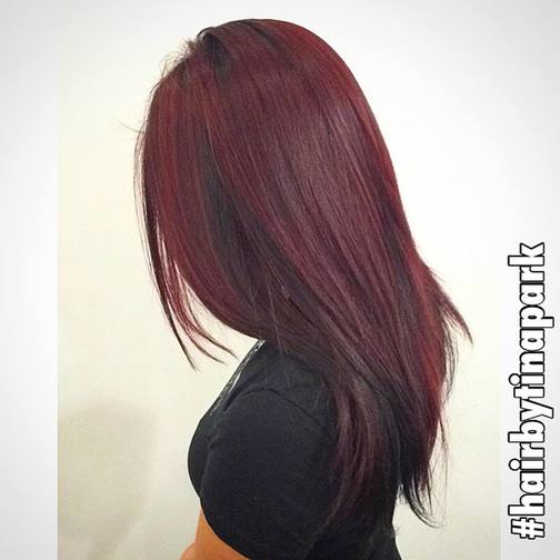 wine red hair color for morena